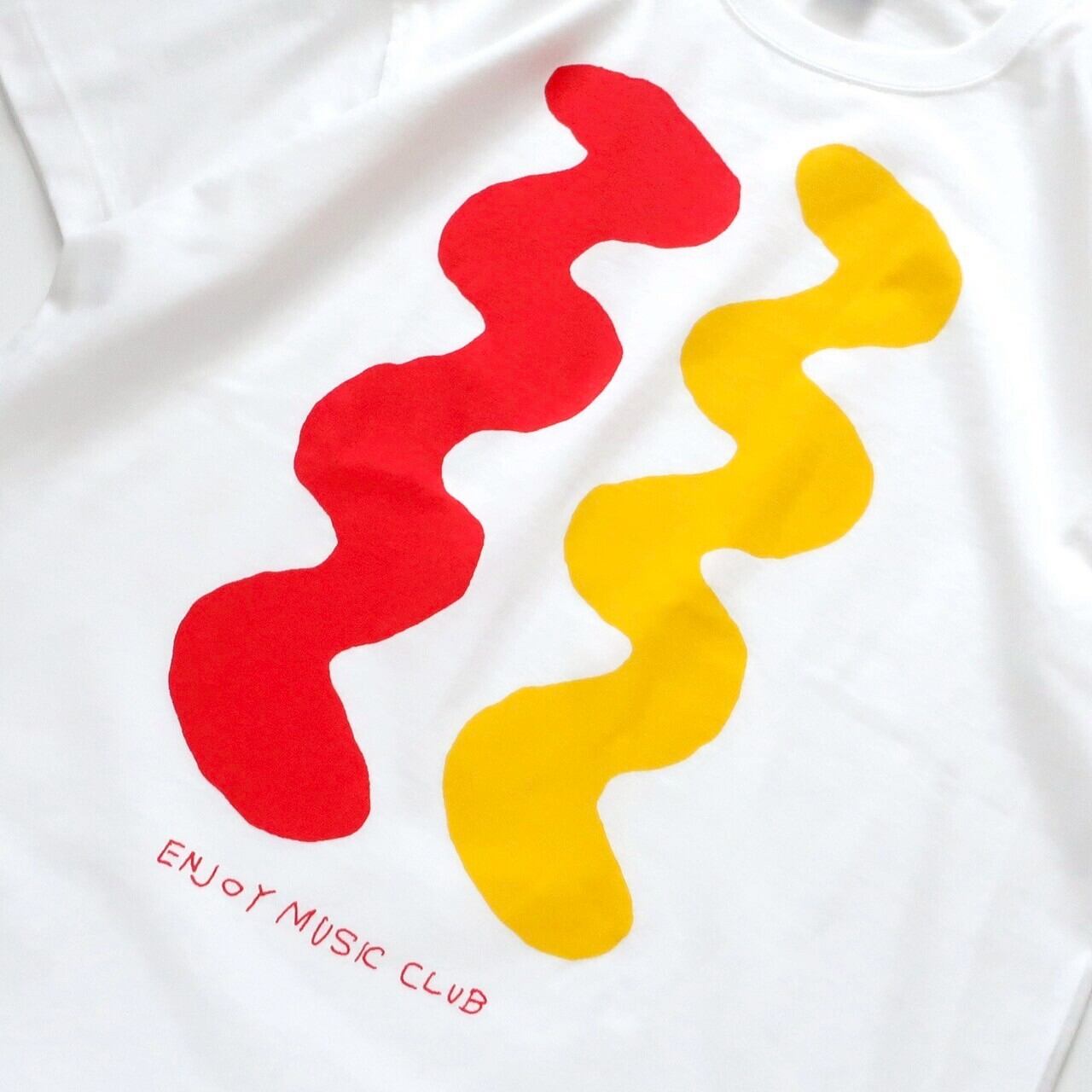 EMCカラー(赤・黄)を基調に、アメリカンドッグにかけるケチャップとマスタードをテーマにした、EMCの音楽が持つ楽しい雰囲気あふれるTシャツです!